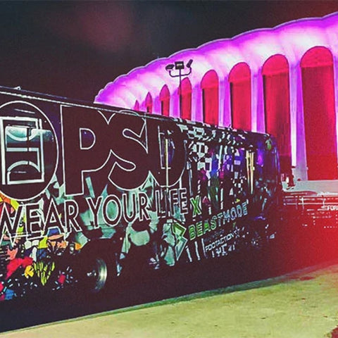 To get their brand rolling, they spent their life-savings on a used RV. They sanded it down, painted it black and added their logo. They quit their jobs and hit the road. They spent the following year promoting PSD out of the RV at car shows, sporting events, music festivals and other events. At one of these events they made contact with their first athlete, Stevie Johnson, who at the time played for the Buffalo Bills. In his next game Johnson scored a touchdown and lifted up his shirt. The PSD logo was front and center on televisions nationwide. It was covered by ESPN and Sports Illustrated.
